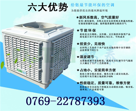 全新特點 1.節能:耗電量隻有傳統壓縮式空調機的十分之一。 2.空氣清新、排除異味:室外的空氣經係統過濾和降溫,送出清新、潔淨、低溫、富氧極高的空氣, 讓您更心怡,克服傳統空調頭暈,頭痛的“空調病”。 3.投資少,初裝費用低。 4.維護成本低,經濟耐用。無須專業維護人員。 5.環保不含氟裏昂,無汙染 即節能又環保,投資費用又低,占地麵積小,安裝簡易等特點。保證給車間一個會呼吸的空間。